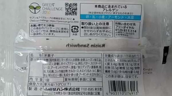セブンイレブンの「7プレミアム レーズンサンド」は、ラム風味のレーズンがアクセントになり、大人な味わいです。