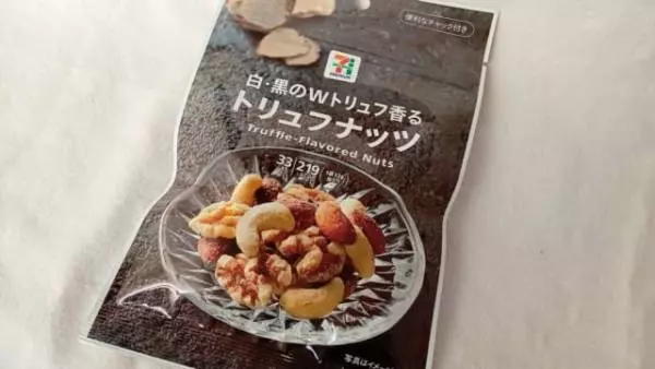 セブンイレブンより、「7プレミアムトリュフナッツ33g」が発売されました! トリュフの高級素材をフレーバーにしたナッツ。 贅沢なトリュフの味わいは、クセになりますよ!
