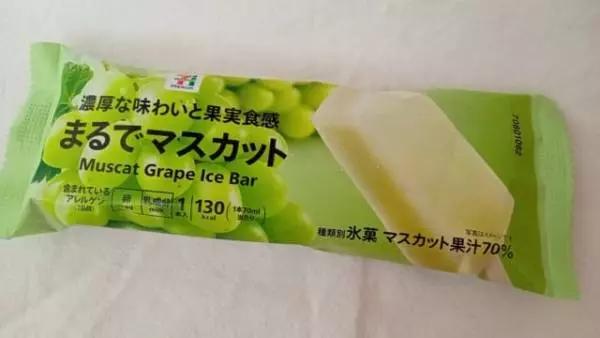 セブンイレブンより、「7プレミアムまるでマスカット」が発売されました。 まるで冷凍マスカットを食べているような、濃厚な味わいを楽しめますよ! 食感がねっとりとしていておいしいんです!