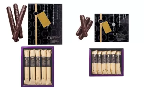 左から:ヨックモックの大定番ショコラ シガール 5本入り¥1,260(7本入り¥1,890)、 プティ ショコラ シガール 6枚入り¥840