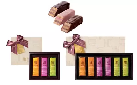 左から:ミルフィーユ3 個入り(ショコラ・フランボワーズ・プラリネ)¥578、 6 個入り(ショコラ・フランボワーズ・プラリネ)¥998 ※バレンタイン限定パッケージ