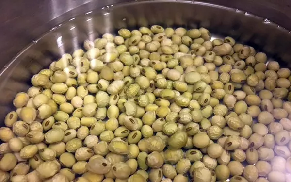 2.大豆のかさの3倍くらいの高さまで水を入れて、火にかける。