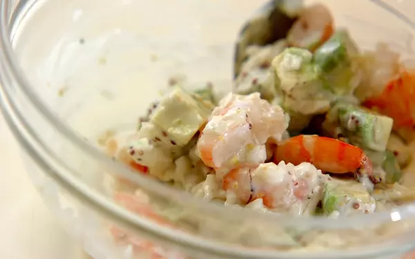 ヨーグルトでヘルシーに! 「エビアボカドサラダ」