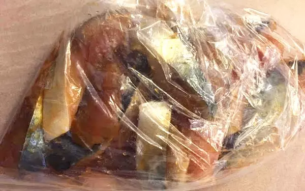 4、2のサバを3のビニール袋に入れて、全体を優しく手でもみながら漬けダレをなじませる。