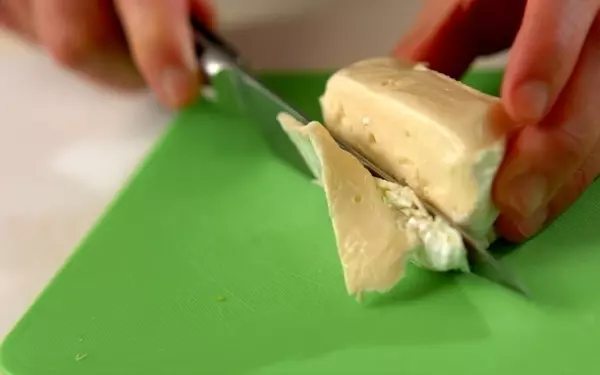 ・カマンベールチーズは上のかたい部分を切り取ってひとくち大に切る。