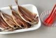 焼き網に薄くサラダ油を塗り、干物の皮を下にして並べ、表面に焼き色がつくまで焼く。器に盛り付け、棒ショウガを添える。