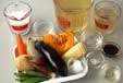 オクラは板ずりして、塩ごと熱湯に入れ色が鮮やかになれば水に取る。粗熱が取れればヘタを切り落とし長さを3つに切る。