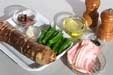 フライパンにオリーブ油、ニンニクを入れて中火にかけ、香りが立ってくれば、京芋、ベーコンを加えて炒める。