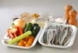小アジはゼイゴを削ぎ落とし、エラを取り除き、盛りつけた時に裏になる腹に切り込みを入れて内蔵を取り、塩水で洗って水気をふき取る。