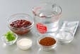 鍋に水、粉寒天をよく混ぜ強火にかけ、煮立てば砂糖を加え、砂糖が溶ければ、少し火を弱めて煮立てた状態で2分煮る。