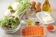 クリームチーズは耐熱ボウルに入れ、電子レンジに20秒かけて柔らかくする。スプーンなどで練り、なめらかになればレモン汁、コショウを加えてよく混ぜ合わせる。ベビーリーフは水に放ち、ザルに上げてしっかり水気をきる。(ヒント)電子レンジは600Wを使用しています。