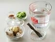 • 貝(ここではハマグリを使っています)は薄い塩水につけて、殻どうしをこすり合わせて洗い、ザルに上げる。