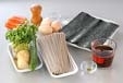 <卵焼き>の材料を混ぜ合わせ、卵焼き器に薄くサラダ油を敷く。卵焼き器を中火にかけて溶き卵の1/3量を流し入れ、菜ばしで混ぜながら向こう側に寄せる。空いた部分にサラダ油を薄く敷き、残りの半量の卵を流し入れ、寄せた卵の下にも流し入れ、向こう側から手前に向かってクルクル巻き、向こう側に滑らせる。同様に卵を巻き、巻きすで巻いて形を整える。粗熱が取れれば5等分に切り分ける。