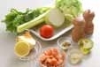 鮭は焼いて香ばしさを出しました。レモン汁で爽やかな感じがでて、オリーブオイルが入ることで、とても野菜と鮭がまろやかになりました。