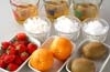・フルーツは季節やお好みでイチゴ、ブルーベリーなどのベリー類やグレープフルーツ、オレンジ、レモン等の柑橘類、サクランボ、パイナップル、リンゴ、ナシ、バナナ、キウイ、ブドウ、青梅、杏、プラム等々。