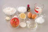 リンゴは皮ごときれいに水洗いし、薄いイチョウ切りにし砂糖、レモン汁と耐熱容器に入れて混ぜ合わせ、ラップをかけずに電子レンジに1分かける。よくかき混ぜて電子レンジで再び5~6分加熱し、ジャム状にする。薄力粉、ベーキングパウダーを合わせて網を通しておく。