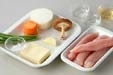 ササミと菜の花、カボチャのみそ豆乳シチュー