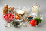 ボウルに肉、玉ネギ、ニンジン、ゴボウ、パン粉、牛乳、卵、塩コショウ、ナツメグを入れ、よく粘りが出るまで手で混ぜ合わせる。