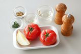 ・トマトは一口大の乱切りにしてもいいですし、薄い輪切りまたは半月切りにして皿に広げてもいいです。 |