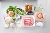 ・熱々ご飯にのせて、カツ玉丼にしてもいいですね!この場合は、調味料はそのままで、だし汁を500ml位にして下さい。 |