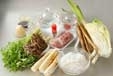 鶏肉はひとくち大に切り、白菜は根元を切り落とし葉はザク切りに、軸は削ぎ切りにして、水洗いし水気をきる。