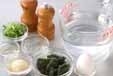 モロヘイヤと鶏ささ身のゴマ和え ワカメスープ