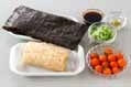 <合わせしょうゆ>のボウルに長芋、プチトマトを入れて和える。器に盛り、刻みネギ、焼きのりを散らす。