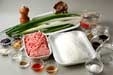 ショウガは皮をむき、みじん切りに、ニンニクは皮をむいて縦半分に切り、みじん切りにする。