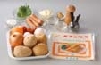 鍋にジャガイモ、ニンジン、卵、全体がかぶる位の水を加え強火にかけ、煮立てば火を少し弱める。(クツクツしている程度の火加減)途中(煮立ってから5~6分)で卵だけを取り出し水に放ち、ジャガイモが柔らかくなるまでゆでる。