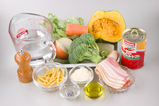 ササミと菜の花、カボチャのみそ豆乳シチュー
