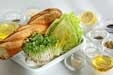 レタスは食べやすい大きさに手でちぎり、水に放つ。パリッとすれば、しっかり水気をきり、ビニール袋に入れて冷蔵庫で冷やしておく。