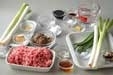 ボウルに<種>の豚ひき肉、塩を入れ、粘りが出るまでしっかり手で混ぜる。他の<種>の材料を加え更によく練り混ぜる。