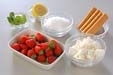 イチゴはヘタを取ってきれいに水洗いし、水気を拭き取る。粒が大きい場合は縦半分に切る。