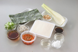 焼きのりはガス火でサッとあぶり、細かく刻む。ある程度の大きさにちぎり、ビニール袋に入れ袋ごともむとキッチンを汚さず、もみのりが作れますよ!白菜キムチは食べやすい大きさに刻む。セロリは筋を引き、4cmの長さの縦薄切りにする。<タレ>を小鍋に入れ、一度煮立たせて冷ましておく。