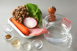 ワインビネガーのさっぱりとした爽やかな香りと、ハムのコクが重なりあったサラダですね。栄養のバランスを考えて水菜とゆで玉子も加えました。