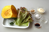 • カボチャは種とワタを取り、所々皮をそぎ落とし、1.5cm角に切る。