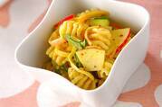 マカロニはたっぷりの熱湯で指定の時間ゆでる。ザルに上げてしっかりゆで汁を切り、ボウルで<下味>をからめ、冷ましておく。
