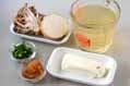 鍋にだし汁を入れて強火にかけ、煮立てば、シメジ、玉ネギを加える。