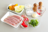 ササミと菜の花、カボチャのみそ豆乳シチュー