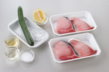 220~250℃に熱したオーブンにブリの切り身を入れ、12~15分焼き、酒を振りかけ表面が乾く程度にオーブンで焼く。