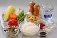 トウモロコシは粒を軸からそぎ落とし、熱湯でゆでてザルに上げ水気を切る。
