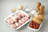 揚げ油を180℃に上げ、4の手羽元を3本ずつ入れ、カリッと美味しそうなキツネ色に2度揚げし、油を切る。器にジャガイモと盛り合わせ、プチトマトを添える。