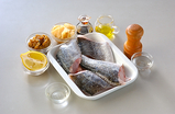 ・振り塩とは、魚の20~30cm上より指の間から塩を落として、魚全体に塩を振り掛けること。魚から離すことでまんべんなく全体に塩を振ることができます。 |