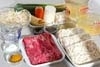<スープ>が煮立ってくれば、油揚げ、大根、ニンジンを加え、大根やニンジンがしんなりすれば、牛肉、ネギ、エノキ、モヤシ、うどん等を加え、煮えた物からスープと一緒に取り鉢に取り分ける。