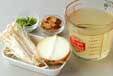鍋にだし汁を入れて強火にかけ、煮立てば玉ネギを加える。