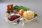 <調味料>を加え、全体にからめるように炒め合わせ、器に盛る。