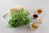豆苗は根元を切り落とし、きれいに水洗いし、3cmの長さに切る。