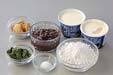 白玉を12個に丸め、少し中央をへこませながら熱湯に入れ、浮いてきたらそのまま1分ゆで、冷水に取り、水気を切る。
