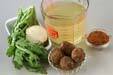 菊菜は根元の固い茎を切り落とし、水洗いし、1cm幅に切る。