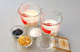 鍋に練り黒ゴマを入れ、牛乳を少しずつ加えて溶きのばし、豆乳、グラニュー糖を加え、中火にかける。
